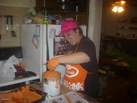 So here we were at 9:00 at night, the kids at a friends house, all the material set out before us, and we begin. Yeah, there's more prep work than we imagined, I have a very small kitchen so we thought that would go fairly fast. Not!!